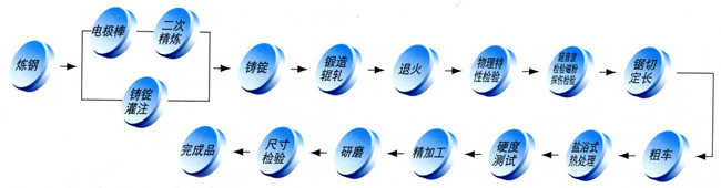 本公司在材料選擇上通常超越客戶要求,ESR制程是我們首要選擇,為達到高清凈度及低氣體含量,所產生的細微結晶粒,讓輥輪在壓延過程中產生高強韌性,而能適用不同滾壓環境,讓輥輪不易產生裂痕。